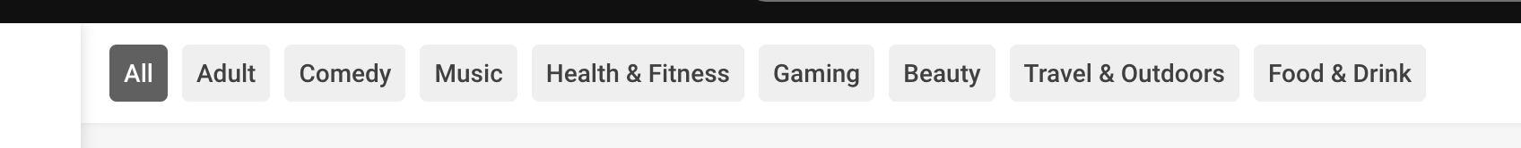 The Vids page is designed to help you easily find exactly what you're looking for. With so much content available, it’s easy to get lost—unless you know how to search! Start by selecting the type of content you want to explore: All, Adult, Comedy, Music, Health & Fitness, Gaming, Beauty, Travel & Outdoors, or Food & Drink. From there, you can further refine your results to find the perfect video every time.
