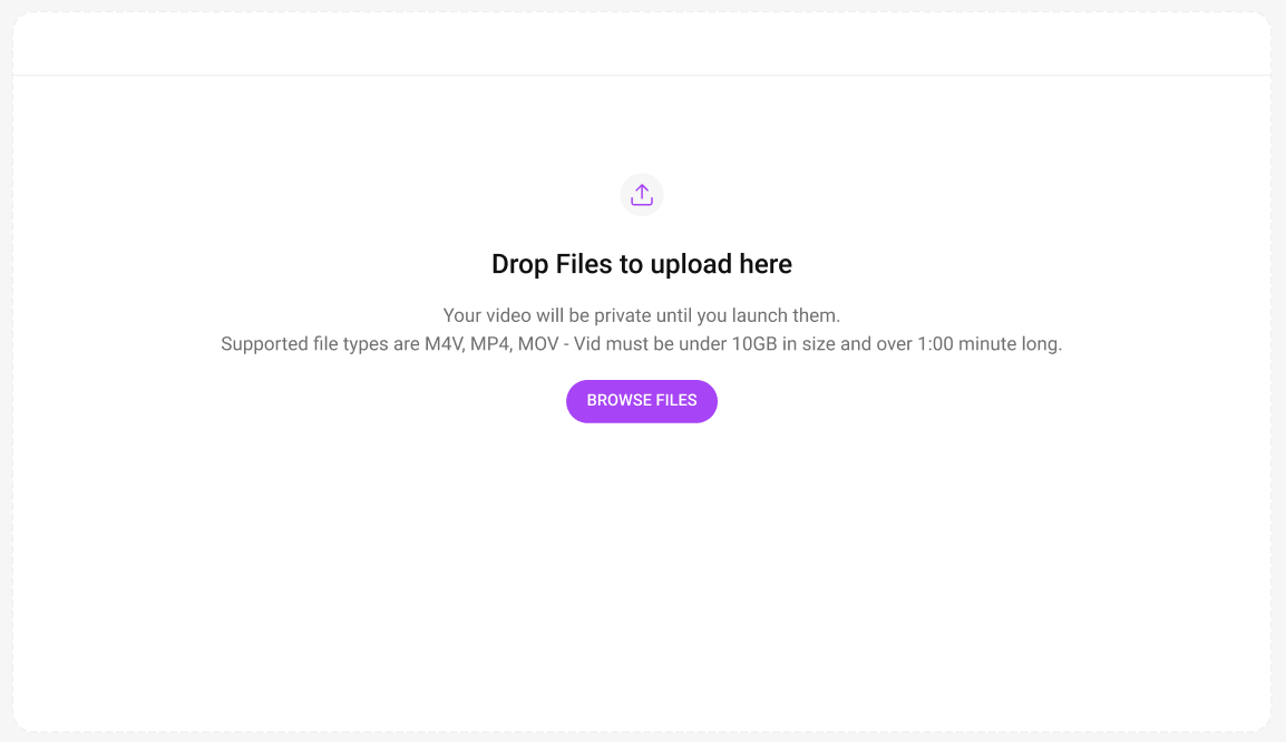 Click "Browse Files" or drag and drop your video file into the designated upload area. We support MP4, M4V, and MOV file formats. Once the file is added, it will start uploading immediately.