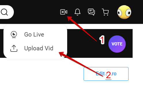Click the camera icon (📷) on any page, and "Upload Vid" from the drop-down menu.