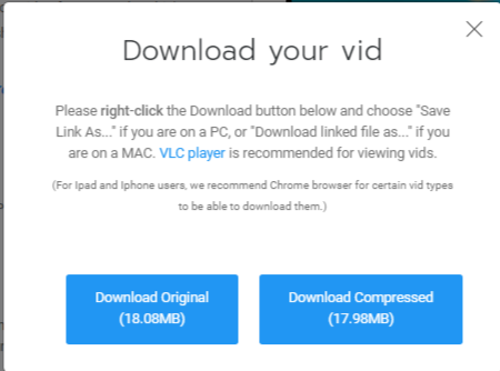 Members have the option to select between downloading the Original file or an Optimized file format of your vids.