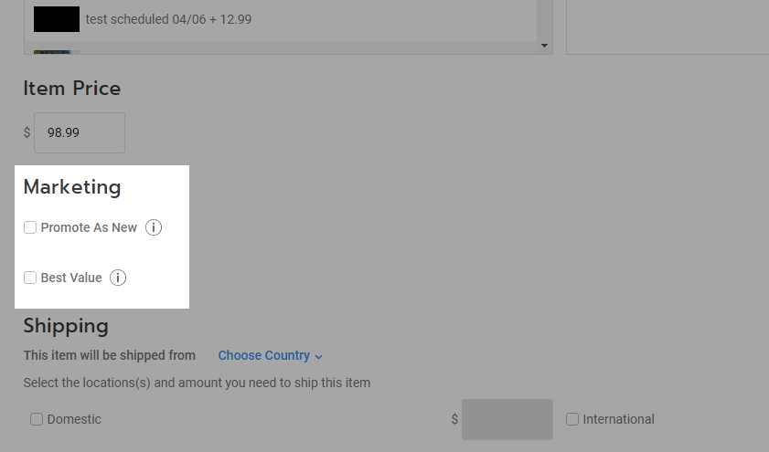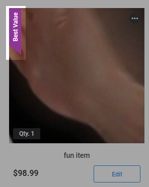 We have 2 ribbons for you to chose from: Best Value and New! Select these options under the 'Marketing' section of your item and your store item will display these ribbons.