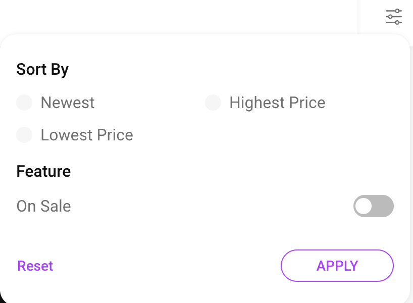 - On Sale Toggle: Enable this option to view only discounted items across the store.