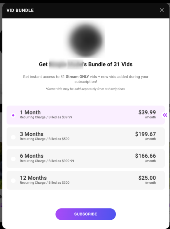 Members will see that your Vid Bundle is Stream Only before purchasing: