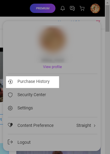 - In your top right menu, click "Purchase History"