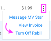 - Click <Turn Off Rebill>Make sure that you are turning off the rebill for the original purchase!