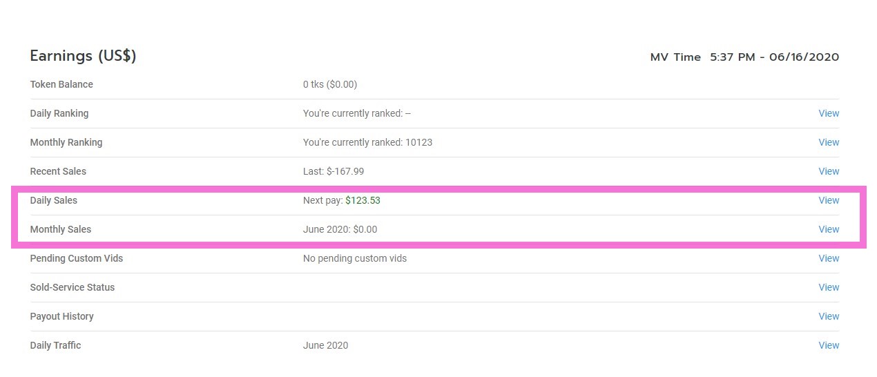 - My Earnings to see your sales mapped out either Daily or Monthly