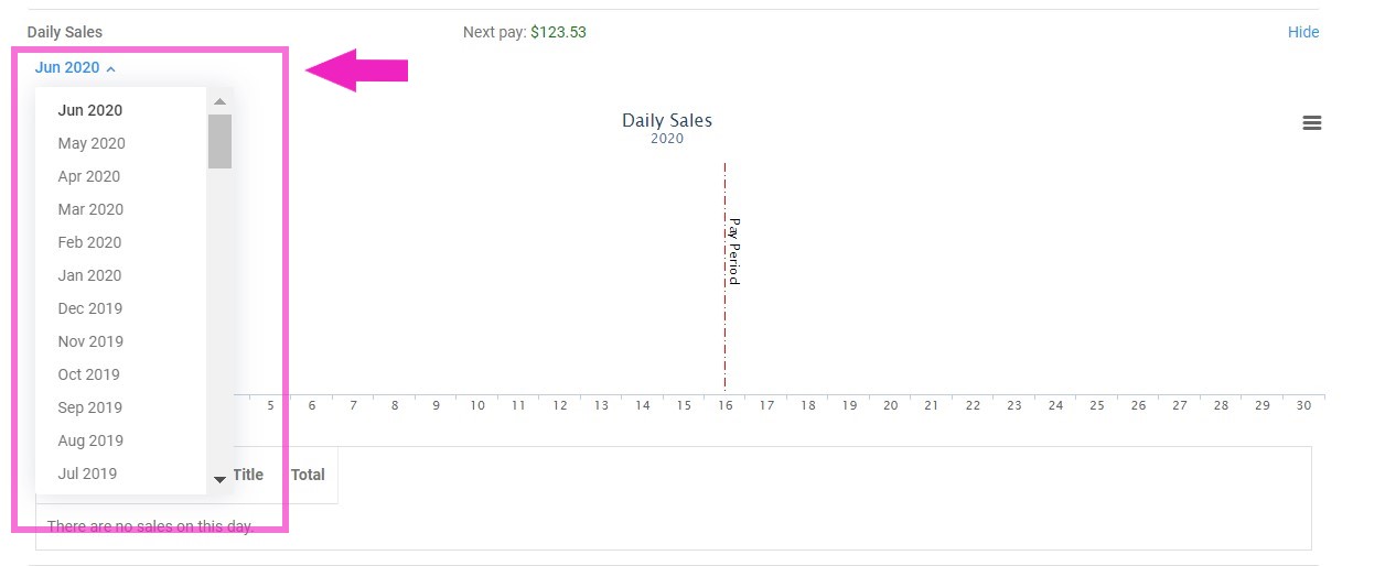 You may also check out the sales from previous months so you can compare for any consistencies or changes. Simply click on the upper left hand corner where it shows the month and the year to navigate throughout your daily sales for previous months.