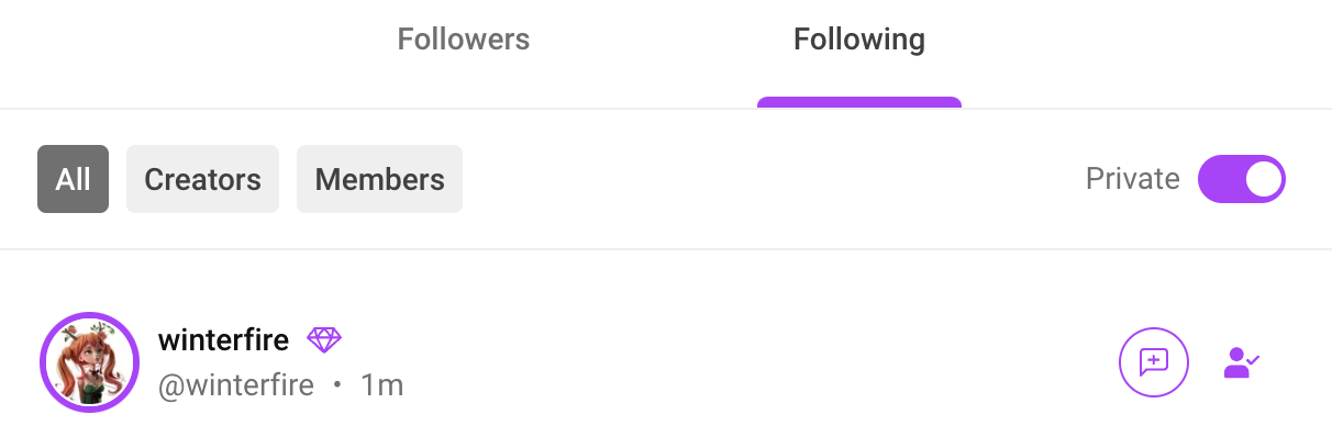 You can filter your followers by clicking on Members or Creators. Simply select which followers you want to view! You can have it set to display ALL followers, Members or Creators.