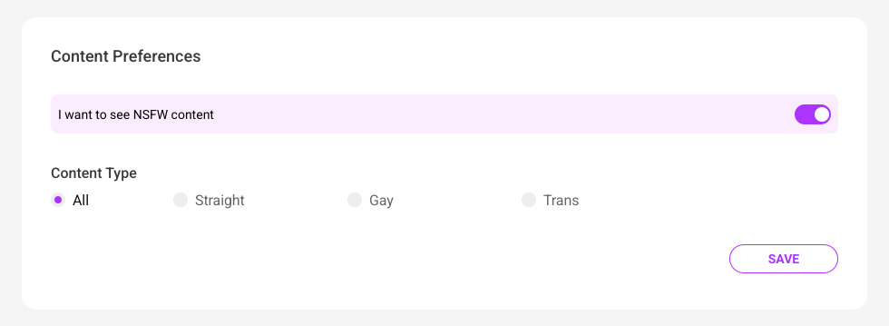 At MV, we believe in providing a personalized and enjoyable experience tailored to your preferences. One of the best ways to ensure that your viewing journey aligns with your interests is by customizing your Content Preferences. With this feature, you can filter and refine the content you see based on what best suits you. Whether you're looking for specific account types or need to toggle between Safe for Work (SFW) and Not Safe for Work (NSFW) content, we’ve got you covered!